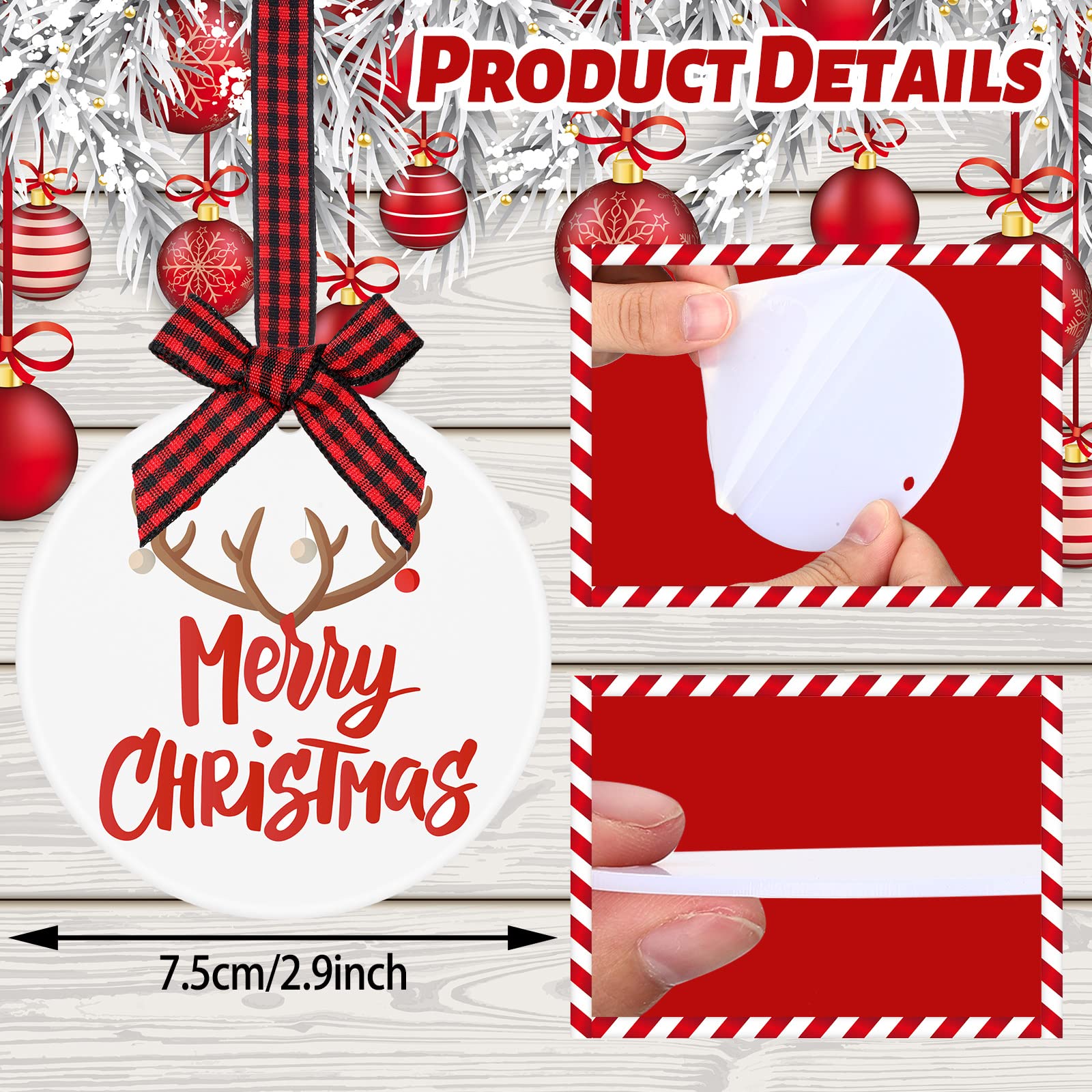 - Sufficient Quantity: you will receive 24 pieces of acrylic Christmas ornament blanks with holes, equipped with 2 rolls of plaid ribbons and 1 roll of jute rope, sufficient quantity and festival design can easily meet your holiday decoration needs